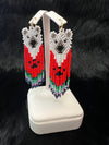 Beaded Earrings Thunderbird Red on Blue Item 17610
