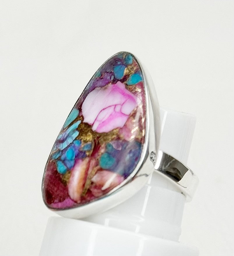 Pink Oyster Turquoise Sterling Silver Adj Ring Size