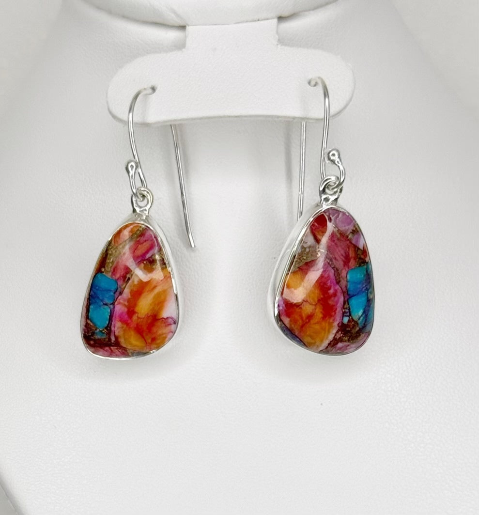 Pink Oyster Turquoise Sterling Silver Earrings Teardrop