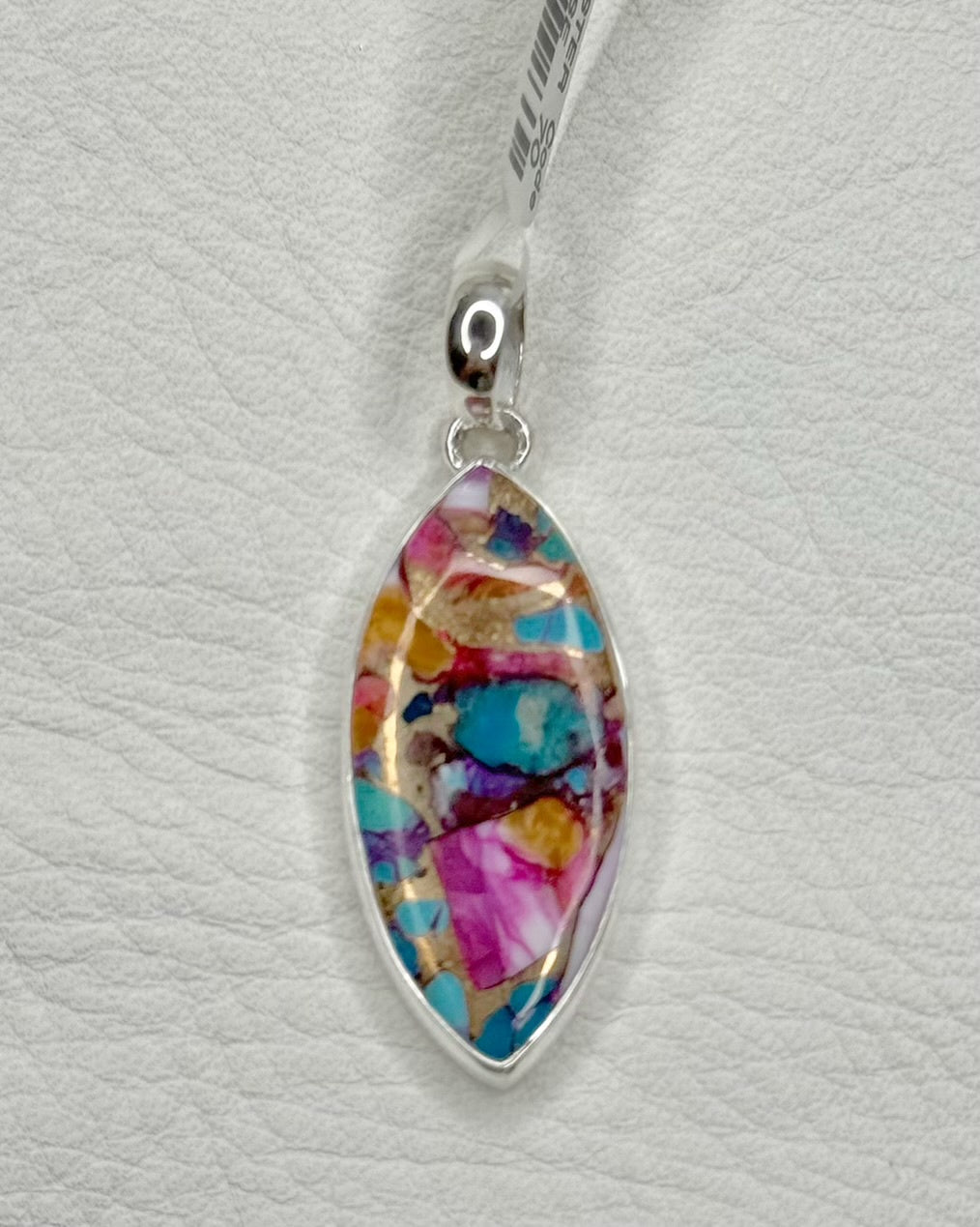 Pink Oyster Turquoise Sterling Silver Pendant Marquise no chain