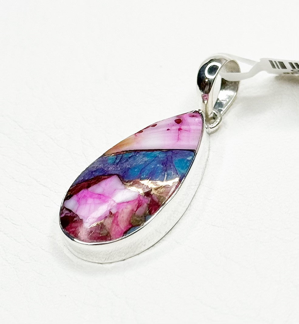 Pink Oyster Turquoise Sterling Silver Teardrop Pendant no chain