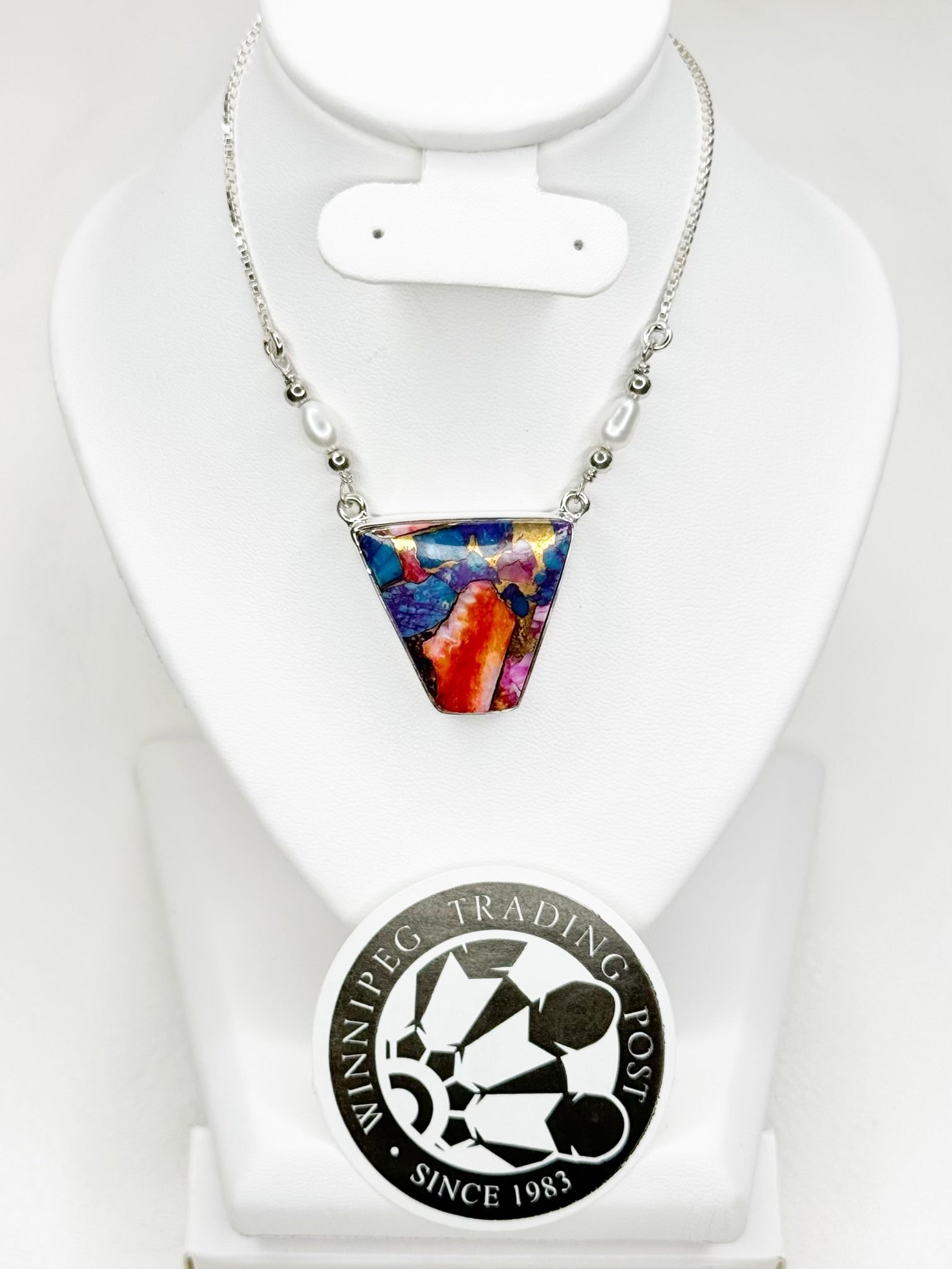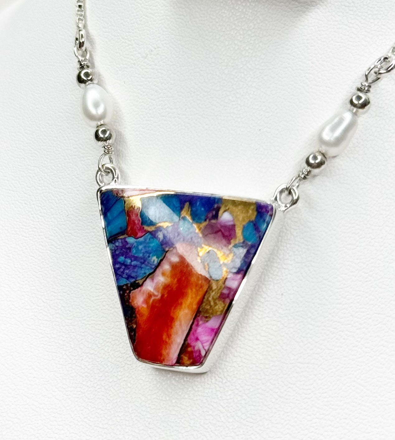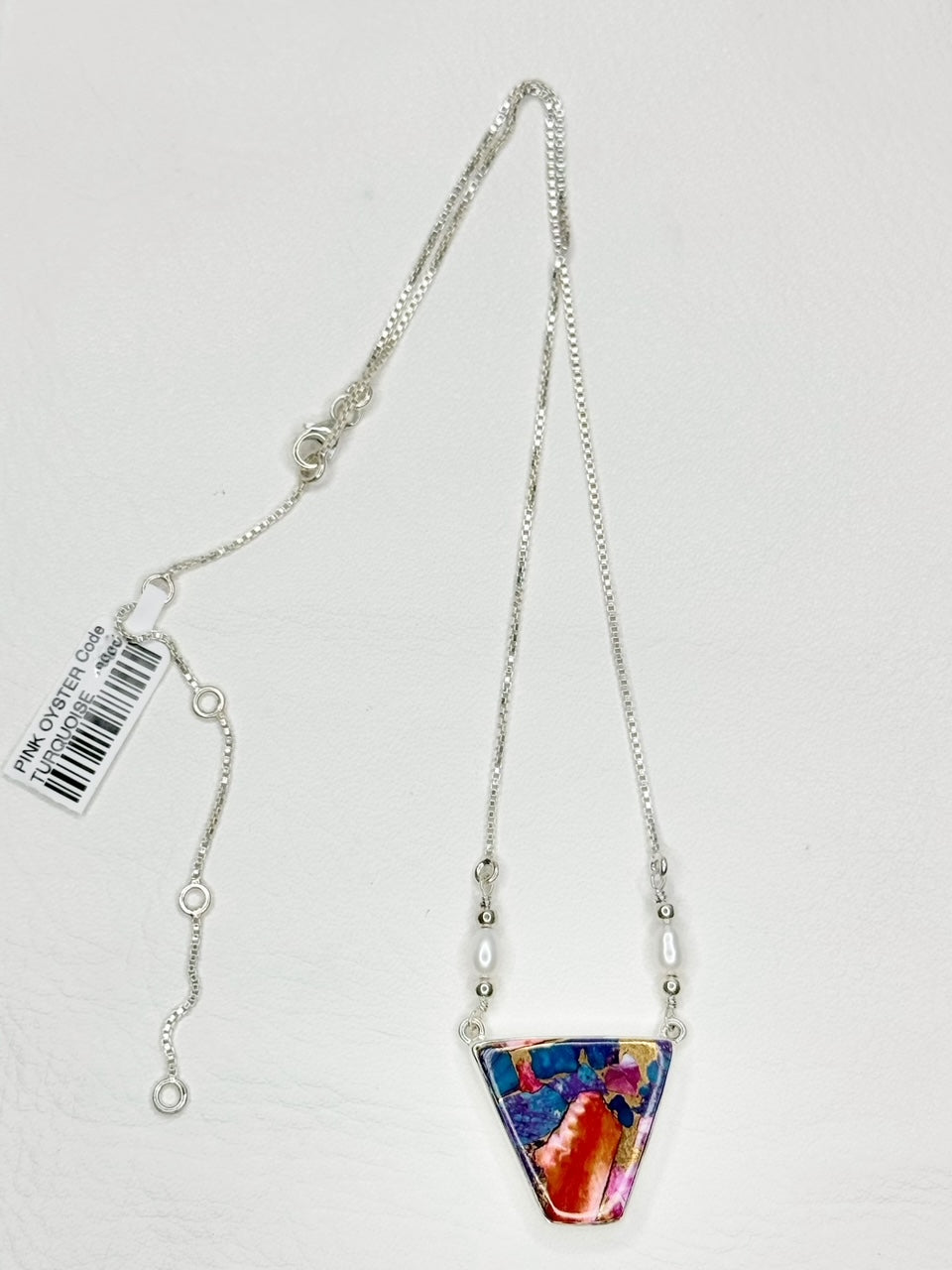 Pink Oyster Turquoise Sterling Silver with Pearls Adjustable Chain