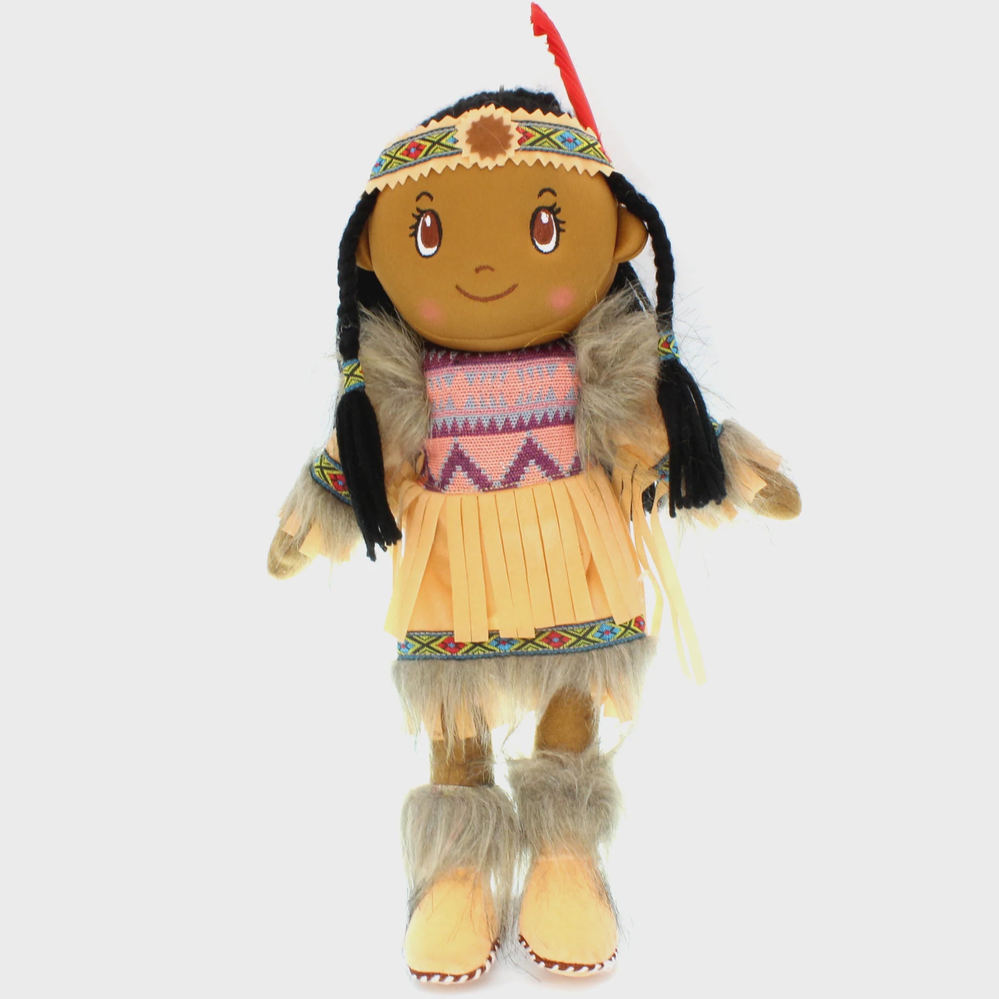 Nizhoni stands at 14 inches tall and embodies the essence of a Cloth Native American Girl Doll. Meticulously crafted from fine fabric and cotton, each stitch is carefully sewn to capture intricate details. Perfect for both cuddles and imaginative play, she is designed to bring joy to children. Additionally, her exquisite craftsmanship makes her an ideal piece for collectors and a charming addition to any décor. Nizhoni seamlessly blends cultural authenticity with durability, ensuring she remains a cherished companion and decorative accent for years to come.