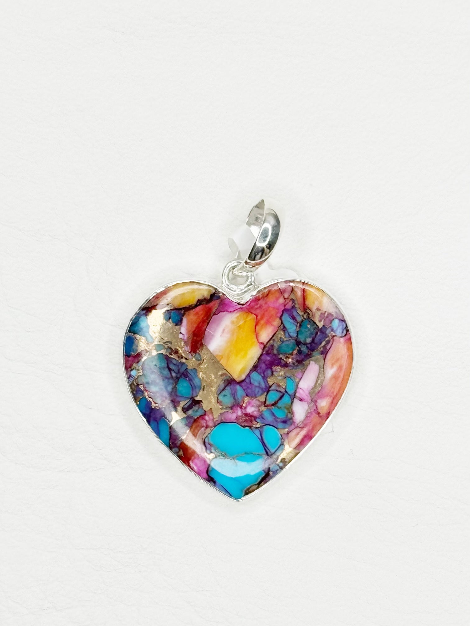 Pink Oyster Turquoise Sterling Silver Heart Pendant