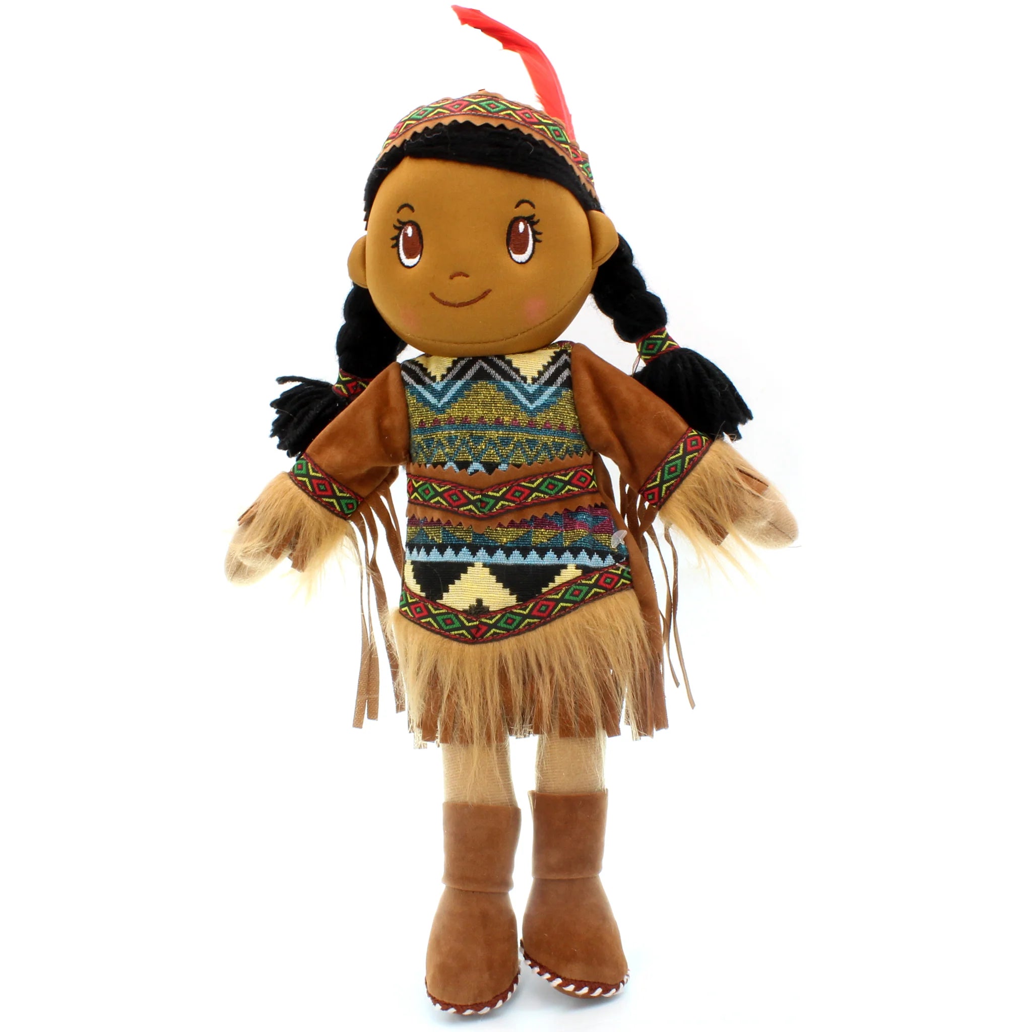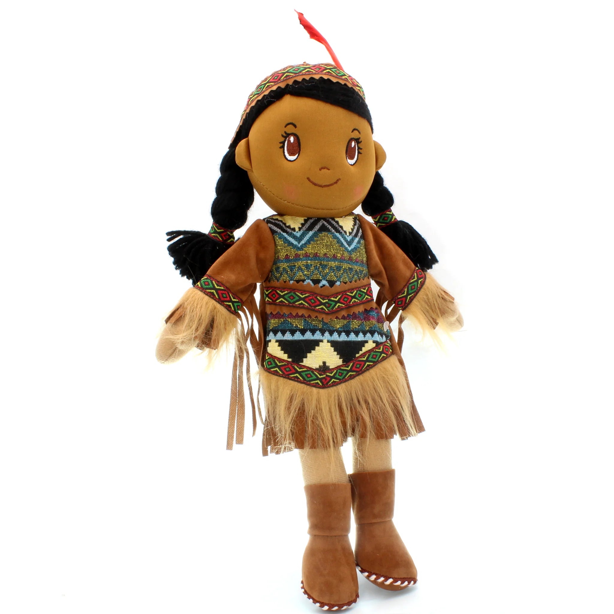 Aruna is a 14" height Cloth Native American Girl Doll. Made of fine fabric and cotton, carefully sewed and detailed. Suitable for hugs and play. Also good for collection and decoration purpose.